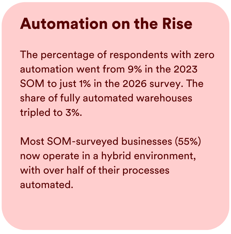 The SOM report makes this shift clear. Static, labor‑heavy warehouses can no longer support the agility today’s consumers expect. Businesses now require intelligent, adaptive systems capable of forecasting demand, orchestrating resources, and flexing automatically under pressure. Fulfillment is becoming an ecosystem that must deliver consistency even when market conditions are down.